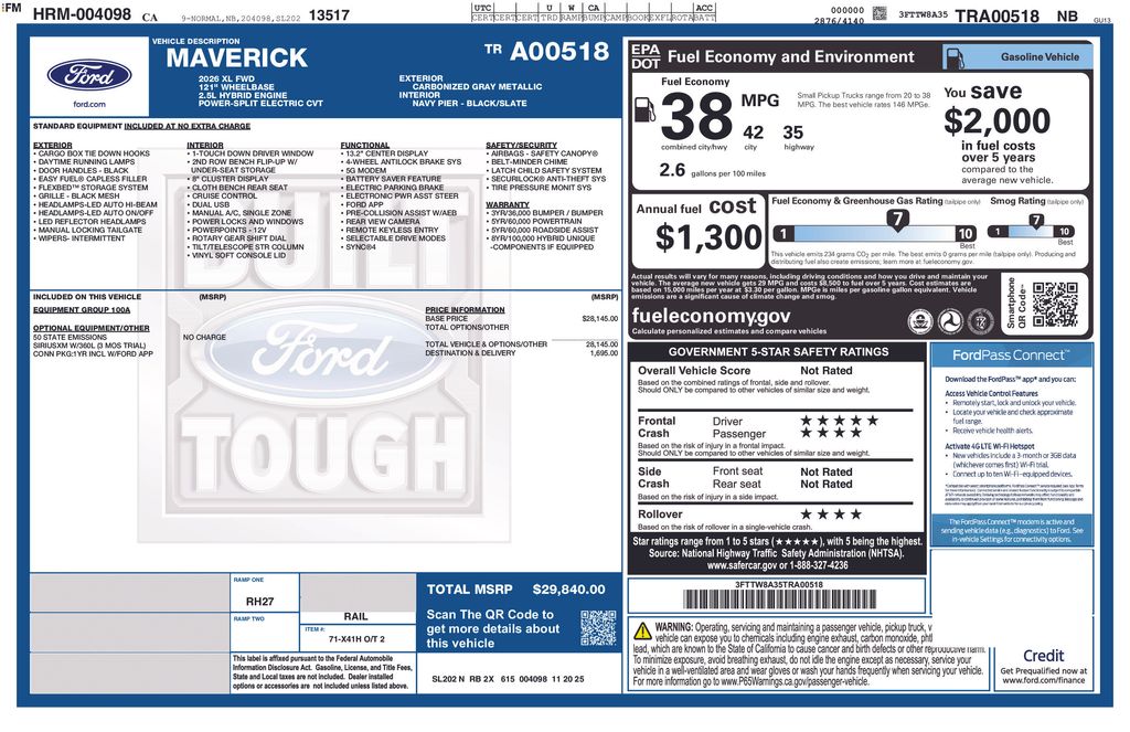 2026 Ford Maverick XL Truck I-4 Hybrid