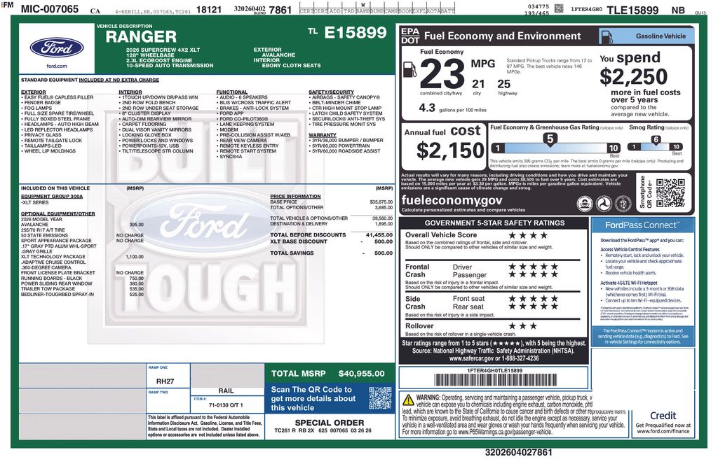 2026 Ford Ranger XLT Truck EcoBoost I4 GTDi DOHC Turbocharged VCT