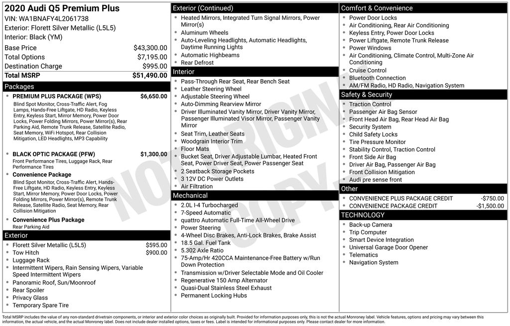 The technology improvements over my 2009 Q5 are outstanding. My old one had a 6 cyl engine. This has more pick up with a 4 cyl. Drives great and wonderfully quiet. - 5.0