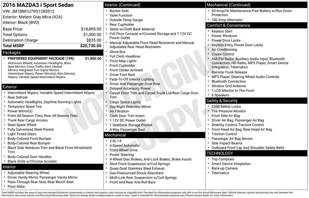 2016 Mazda Mazda3 i Sport Sedan SKYACTIV®-G 4-Cylinder DOHC 16V